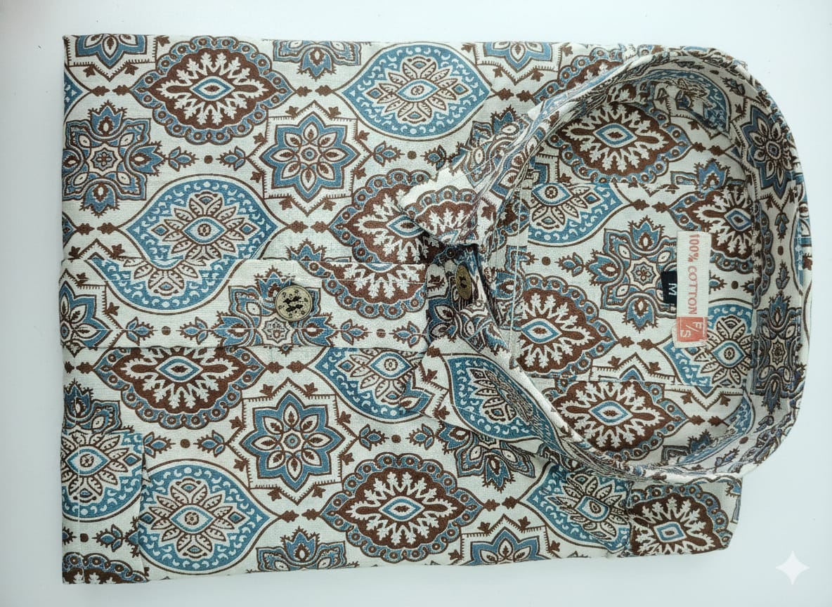 Upgrade your wardrobe with this Men’s Ethnic Motif Printed Full Sleeve Shirt, designed for a perfect blend of traditional patterns and modern style. Featuring an elegant all-over ethnic print, this shirt adds a classy and sophisticated touch to your everyday and occasion wear.